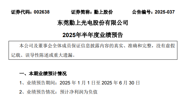 勤上股份:预计2025年上半年亏损2600万元-3200万元